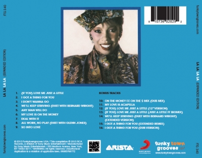 In addition to offering all nine selections from Arista’s original 1987 release, FunkyTownGrooves’ expanded 2013 edition of La La contains no less than seven bonus tracks—which include an extended version of “We’ll Keep Striving,” two dance mixes of “(If You) Love Me Just a Little” and two versions of “I Got a Thing for You” (a dub version and an extended vocal remix).